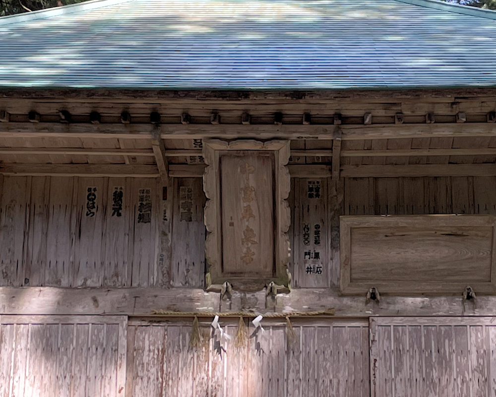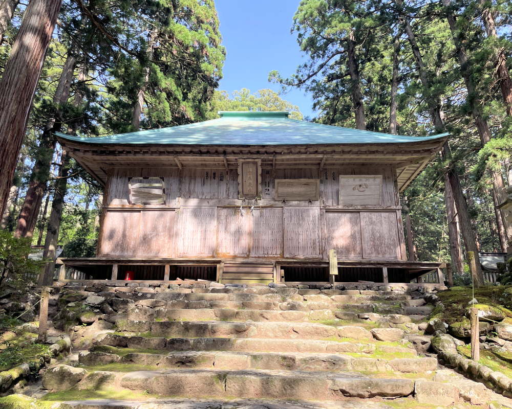 現在の拝殿は江戸時代に再建されたもので、「寄棟檜皮葺」という格式高い造が特徴です。正面の額には「中宮平泉寺」と記され、平安時代の風情を今に伝えています。