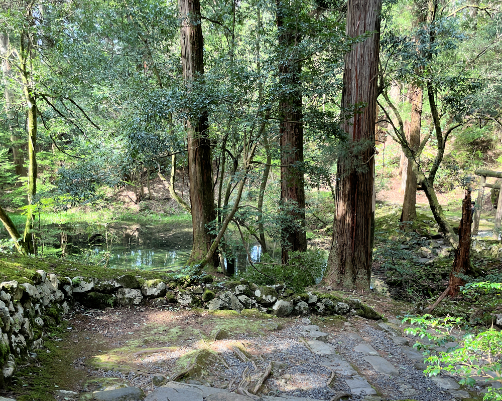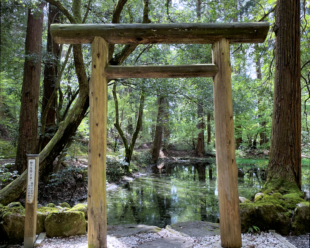 女神が降り立ったとされる池の中央の岩は、現在も「影向岩」と呼ばれ、伝説の舞台として静かにその姿をとどめています。